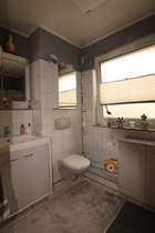 Der Eingangsbereich bietet Platz für eine Garderobensituation und ist über den Erdgeschosseingang begehbar. Über die Diele erreichen Sie das Badezimmer mit einer Wannendusche und einer Toilette. Neben dem Badezimmer liegt das Schlafzimmer. Beide Räume bieten einen Tageslichtzugang über große Fenster.