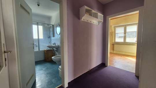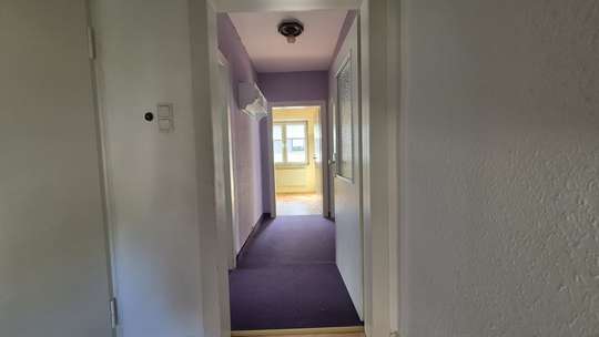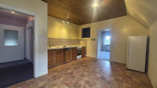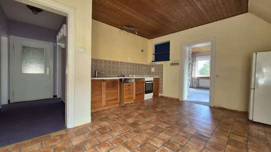 Über den Flur, an den Schlafzimmern vorbei gelangen Sie in die Küche, welche genügend Platz für einen großen Esstisch bietet. Ebenfalls ohne Probleme kann man hier eine moderne Küche einbauen.