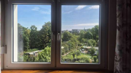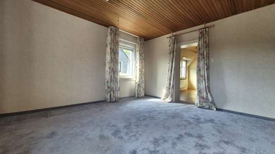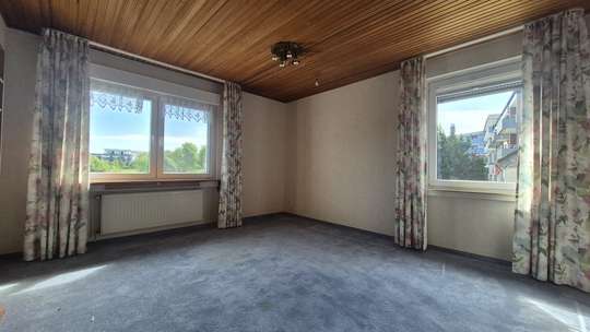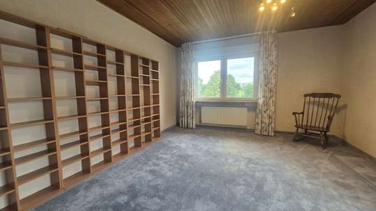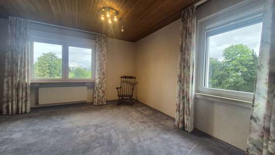 Rückwärtig zum Haus befindet sich das Wohnzimmer, welches ebenfalls mit neuen Fenstern ausgestattet wurde. Der Blick aus dem Fenster geht ins Grüne, sowie in den eigenen Garten. Die Gartenfläche beträgt weit über 100m², die Wohnung selber ist renovierungsbedürftig, hier kann man leicht mit geschickten Handgriffen eine einzigartige und stilistische Wohnsituation schaffen.