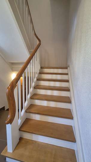 Das Zweifamilienhaus wurde aufwendig saniert im Außenbereich und ebenfalls die Versorgungstechnik wurde bereits überholt. Durch den gemeinschaftlichen Eingang gelangen sie in das renovierte Treppenhaus mit einer stilistischen Echtholztreppe. Im Obergeschoss befindet sich die Wohnung mit rund 70 m².