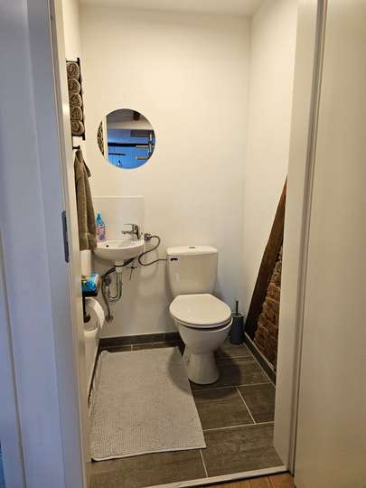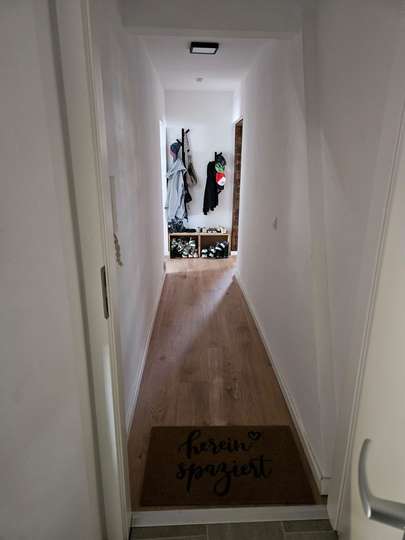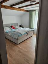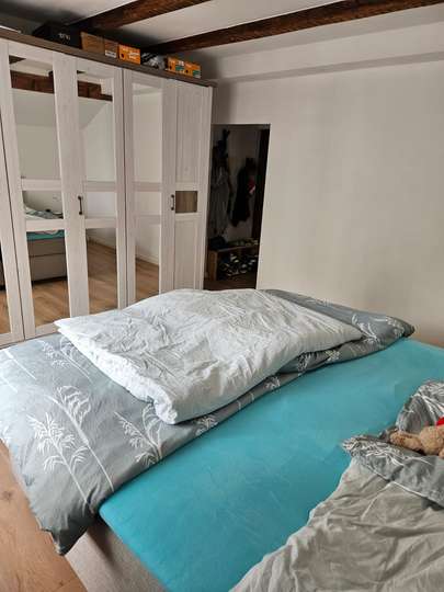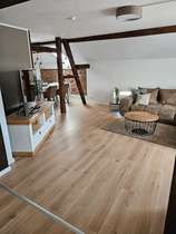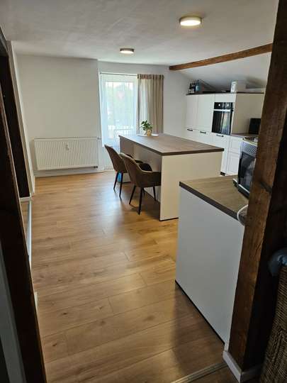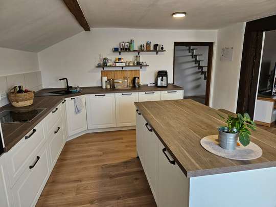 Die Dachgeschosswohnung verfügt über 3 Zimmer, neben (offener) Küche, Diele, Badezimmer und einem Gäste-WC.