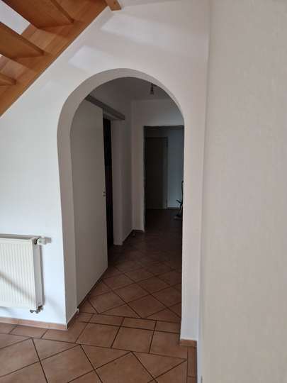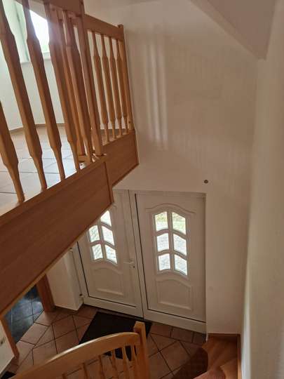Hinter der Hauseingangstüre erwartet Sie ein großzügiger Eingangsbereich, welcher genügend Platz für eine Garderobensituation bietet. Hier befindet sich neben einer Gästetoilette für das Erdgeschoss, auch die Echtholztreppe in die obere Etage.