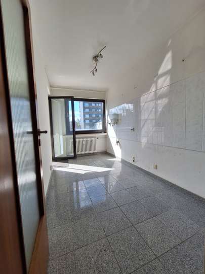 Von dort, erreichen sie die beide großzügig geschnittene Zimmer. Das Schlafzimmer auf der rechten Seite, besticht durch seine Lage, außerordentliche ruhe, zumal niemand mehr über Ihnen wohnt. Neben dem Schlafzimmer, befindet sich die Küche, auch hier sind Granitfliesen zum Einsatz gekommen.