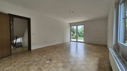 Das Wohnzimmer verfügt über einen, eigenen Zugang in den Garten.