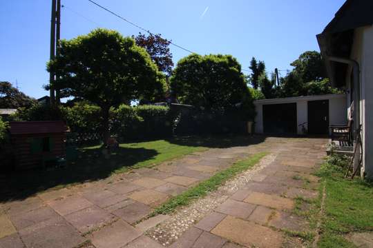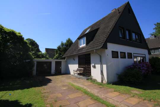 Eine großzügige Einfahrt bietet viel Platz für Ihre Fahrzeuge. Dazu gibt es noch eine freistehende Garage. Das Grundstück vor dem freistehenden Haus ist umlaufend Grün und bietet viel Fläche für die Erholung zuhause.