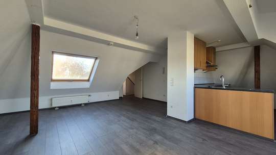Ruhig, aber nicht weit vom Zentrum entfernt, finden Sie diese charmante Dachgeschosswohnung, mit Einbauküche, zum Wohnbereich offen.