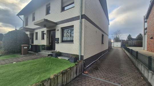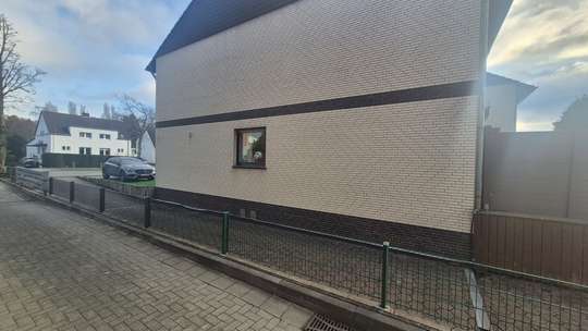 Rückwärtig zum Haus befindet sich die Garage, welche wahlweise durch den Garten betreten werden kann oder über die Zufahrt.