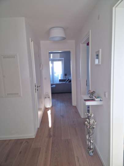 Die Wohnung ist mit stilvollen Holzdielen ausgestattet, die eine warme und einladende Atmosphäre schaffen. Ein Aufzug im Gebäude sorgt für eine bequeme Erreichbarkeit der Wohnung, während die energiesparende Wärmepumpe für ein angenehmes Raumklima sorgt.