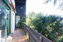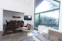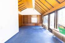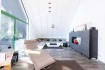 Die rechte Einheit eignet sich ideal als Büro mit einem geräumigen Chefzimmer, das alternativ auch als Wohnzimmer genutzt werden könnte und über einen eigenen Balkon sowie einer architektonisch besonders geformten Deckenhöhe verfügt. Zusätzlich bietet dieser Bereich zwei weitere potenzielle Arbeitsräume. In den Dachschrägen wurde zudem ein clever integrierter Raum geschaffen, der sich als Lagerraum oder Spielbereich für Kinder eignet.