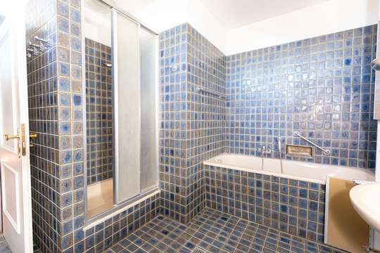 Das separate Badezimmer mit getrenntem WC kann bei Bedarf zu einem vollwertigen, großen Badezimmer umgestaltet werden. Komplettiert wird das Erdgeschoss durch ein zusätzliches Gäste-WC nahe dem Eingang sowie einem Schlafzimmer mit Ankleide. Diese Etage kann wahlweise separat oder in Verbindung mit den anderen Wohneinheiten genutzt werden und eignet sich damit perfekt für ein barrierefreies Wohnen im Alter.