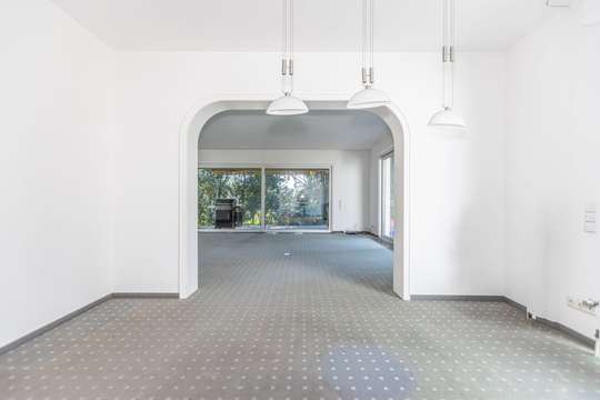 Über die Diele erreichen Sie wahlweise das Esszimmer oder das Wohnzimmer. Die bodentiefen Fenster sorgen in beiden Räumen für eine helle Atmosphäre und bieten jeweils einen separaten Zugang zum Garten. Unmittelbar vom Esszimmer aus zugänglich befindet sich die Küche mit genügend Fläche für Ihre Küchenideen und funktionalen Anforderungen.