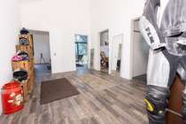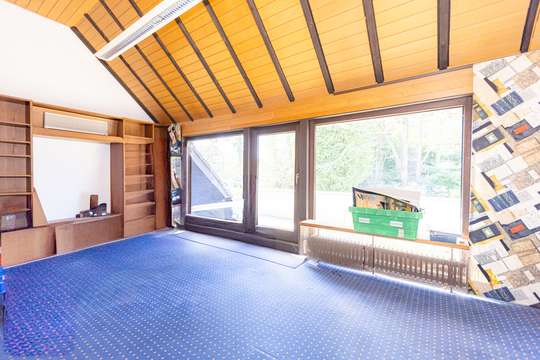 Im Obergeschoss liegen sowohl die Wohneinheit als auch die hauseigene Büroeinheit. Falls Sie nicht von Zuhause aus arbeiten möchten, könnten Sie die Büroräume ebenfalls als zusätzlichen Wohnbereich umnutzen.