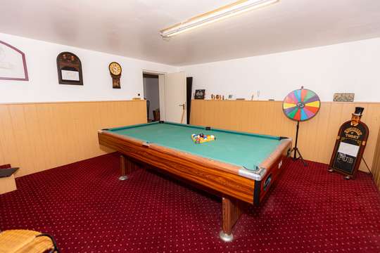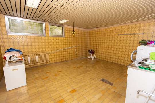 Das Untergeschoss überrascht mit Tageslichtfenstern und gleicht eher einer zusätzlichen Wohnetage als einem Keller. Der geräumige Hobbyraum mit eigener Sauna bietet Platz für vielfältige Aktivitäten wie Billard oder Fitness. Die zusätzlichen Kellerräume eignen sich hervorragend für Lagerungen, während der Heizungskeller eine voll funktionsfähige Gas-Heizungsanlage beherbergt. Ein separater Ausgang führt direkt zum Garten und zur Terrasse – praktisch für kurze Wege.