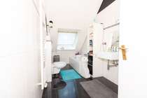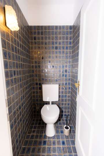 Das separate Badezimmer mit getrenntem WC kann bei Bedarf zu einem vollwertigen, großen Badezimmer umgestaltet werden. Komplettiert wird das Erdgeschoss durch ein zusätzliches Gäste-WC nahe dem Eingang sowie einem Schlafzimmer mit Ankleide. Diese Etage kann wahlweise separat oder in Verbindung mit den anderen Wohneinheiten genutzt werden und eignet sich damit perfekt für ein barrierefreies Wohnen im Alter.