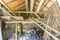 Die großzügigen Räume mit originalen Fachwerkelementen lassen sich vielseitig nutzen. Es gibt genug Platz für klassische Wohnbereiche, Arbeitsnischen, Hobbyräume und eine offene Wohnküche.